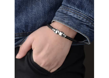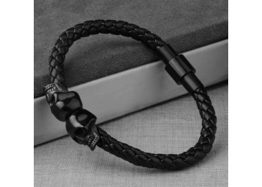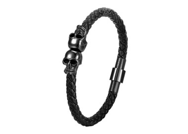 La Skull Black es una pulsera diseñada para hombres con carácter fuerte y estilo rebelde. Su diseño combina cuero negro con dos calaveras de acero inoxidable pulido, creando un accesorio que transmite fuerza y personalidad. Te la puedes poner en cualquier ocasión. Es de cierre magnético muy cómoda de llevar.