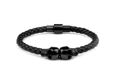 La Skull Steel es una pulsera diseñada para hombres con carácter fuerte y estilo rebelde. Su diseño combina cuero negro con dos calaveras de acero inoxidable pulido, creando un accesorio que transmite fuerza y personalidad. Te la puedes poner en cualquier ocasión. Es de cierre magnético muy cómoda de llevar.