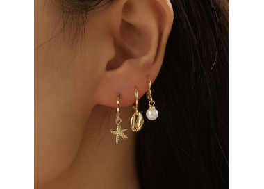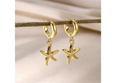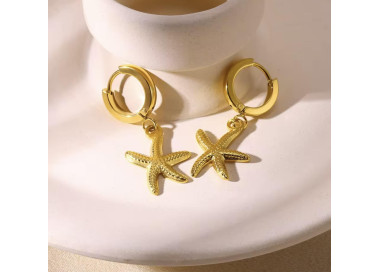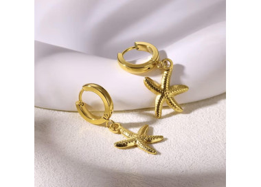 Inspirados en la belleza del mar, estos pendientes no pasaran desapercibidos. Su aro dorado con un charm de estrella de mar, logando un balance perfecto entre frescura y elegancia.