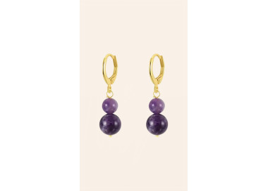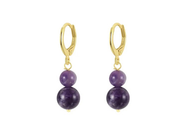 Los pendientes destacan por su original diseño con dos bolas, tienen un diseño muy fino y original. Están diseñados con piedras naturales de Amatista, disponibles en Plata de Ley 925 y Acero inoxidable. Sin níquel, sin plomo, de material hipoalergénico de máxima calidad para pieles sensibles, esta ensamblado a mano.