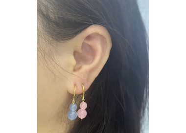 Los pendientes destacan por su original diseño con dos bolas, tienen un diseño muy fino y original. Están diseñados con piedras naturales de Cuarzo Rosa, disponibles en Plata de Ley 925 y Acero inoxidable. Sin níquel, sin plomo, de material hipoalergénico de máxima calidad para pieles sensibles, esta ensamblado a mano.