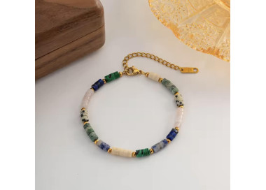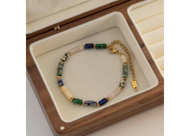 La Pulsera Harmony es una celebración del color y la armonía natural. Diseñada con una cuidada selección de piedras multicolor en tonos suaves y vibrantes —verdes, azules y neutros— esta pulsera transmite calma, frescura y estilo en cada detalle.