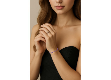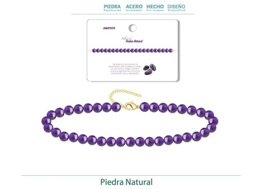Es una pulsera de bolas que destaca por su color violeta cristalino. Diseñada con piedras naturales de Amatista.