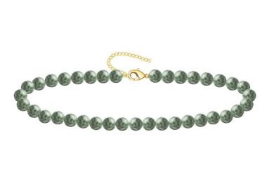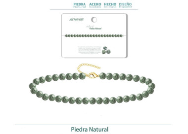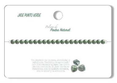 Es una pulsera de bolas que destaca por su color con tonos verdes con puntitos negros. Diseñada con piedras naturales de Jade