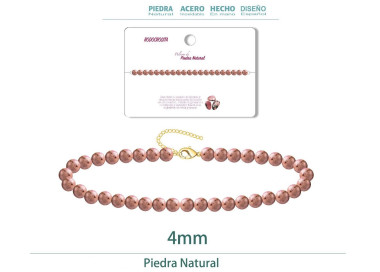 Es una pulsera de bolas que destaca por sus tonalidades rosadas. Diseñada con piedras naturales de Rodocrosita .