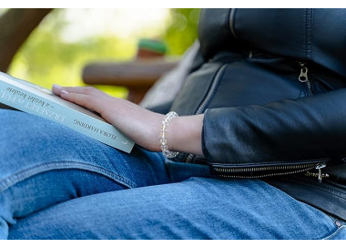 Es una pulsera de bolas elegante que destaca por su color blanco transparente muy brillante. Diseñada con piedras naturales de Cuarzo Blanco. Es elástica muy cómoda de llevar.