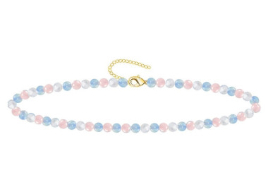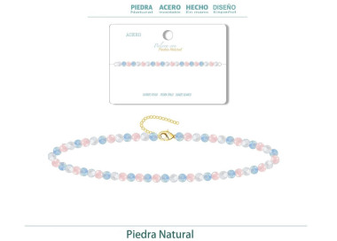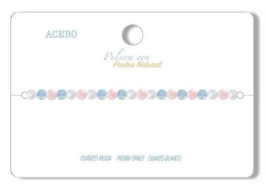 Es una pulsera de bolas que destaca por su variedad de colores blanco y rosa. Diseñada con piedras de Cuarzo Blanco, Cuarzo Rosa Y Opalina.