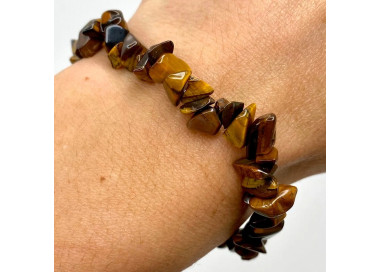 Es una pulsera elegante que destaca por sus tonalidades de colores marrones con reflejos amarillos. Diseñada con piedras naturales de Ojo de Tigre. Es una pulsera elástica muy cómoda de llevar.