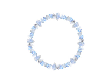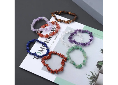 Es una pulsera elegante que destaca por sus tonalidades de color violeta cristalino. Diseñada con piedras naturales de Opalina . Es una pulsera elástica muy cómoda de llevar.