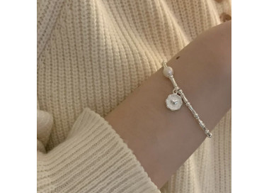 Lena es una pulsera de diseño minimalista, tiene como protagonista su forma de nudos de bambú y perlas con un colgante de corazoncito, es una pulsera exclusiva y elegante de estilo Boho Style, es una joya original y divertida. Te la puedes poner en cualquier ocasión, es ajustable muy cómoda de llevar.