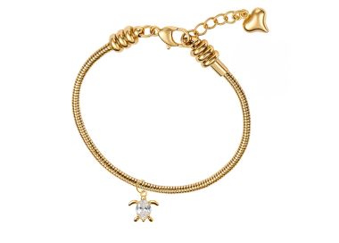 La pulsera Special Charm es la pieza fundacional de toda historia personal. Con un diseño de cadena de serpiente en Acero Inoxidable dorado, esta pulsera destaca por su flexibilidad arquitectónica y su brillo continuo, rematada con un elegante cierre de mosquetón y una delicada extensión finalizada en un corazón esculpido..