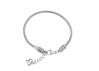 La pulsera Special Charm es la pieza fundacional de toda historia personal. Con un diseño de cadena de serpiente en Acero Inoxidable dorado, esta pulsera destaca por su flexibilidad arquitectónica y su brillo continuo, rematada con un elegante cierre de mosquetón y una delicada extensión finalizada en un corazón esculpido..