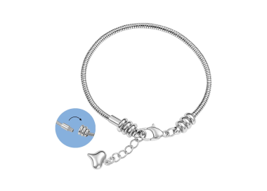 Diseñada con un Sistema de apertura roscada en uno de sus extremos, permitiendo que sus charms se deslicen con total seguridad y precisión técnica