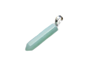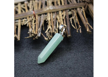 El colgante destaca por su forma de punta, es una joya elegante, original y divertida. Diseñada con piedras naturales de Aventurina Verde. Está ensamblado a mano en Acero.