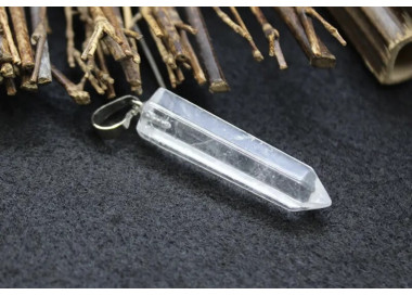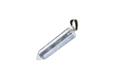 El colgante destaca por su forma de punta, es una joya elegante, original y divertida. Diseñada con piedras naturales de Cuarzo Blanco. Está ensamblado a mano en Acero.