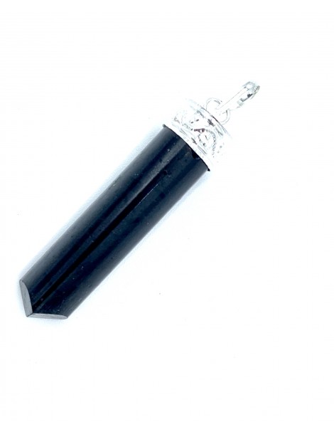El colgante destaca por su forma en punta con el engarce plateado que le da un toque diferente y original. Diseñada con piedras naturales de Turmalina Negra. Está engarzado a mano en Acero.