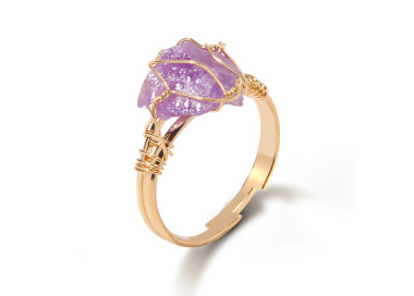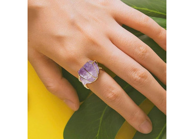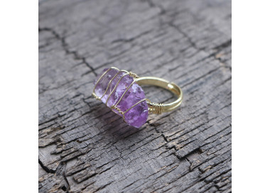 Este anillo destaca por su geometría irregular, es una joya elegante, original y divertida. Diseñado con piedras naturales de Amatista, sin níquel, sin plomo, de material hipoalergénico de máxima calidad para pieles sensibles, esta ensamblado a mano.