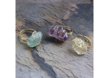 ANILLO DE FLUORITA Este anillo destaca por su geometría irregular, es una joya elegante, original y divertida. Diseñado con piedras naturales de...