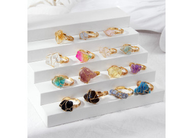 ANILLO DE CUARZO BLANCO Este anillo destaca por su geometría irregular, es una joya elegante, original y divertida. Diseñado con piedras naturales...