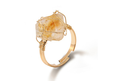 Este anillo destaca por su geometría irregular, es una joya elegante, original y divertida. Diseñado con piedras naturales de Cuarzo Citrino, sin níquel, sin plomo, de material hipoalergénico de máxima calidad para pieles sensibles, esta ensamblado a mano.