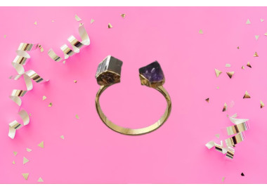 ANILLO DE AMATISTA Este anillo destaca por su geometría irregular, es una joya elegante, original y divertida. Diseñado con piedras naturales de...