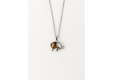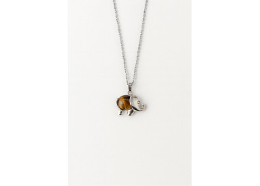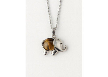 El collar destaca por su forma de Elefante, es una joya elegante, original y divertida. Diseñada con piedras naturales de Ojo de Tigre. Está ensamblado a mano, incluye cadena de acero.
