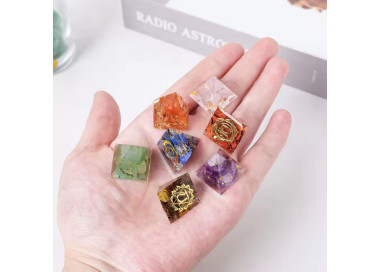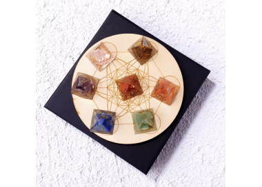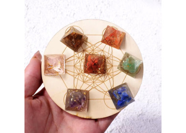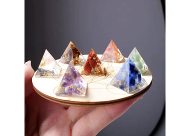 Set de pirámides de los 7 Chakras con la placa de madera incluida.