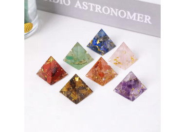 PIRAMIDE ORGONITA DE AMATISTA - TURMALINA NEGRA Pirámide de Orgonita hecha de minerales naturales de Amatista y Turmalina Negra. La forma de...
